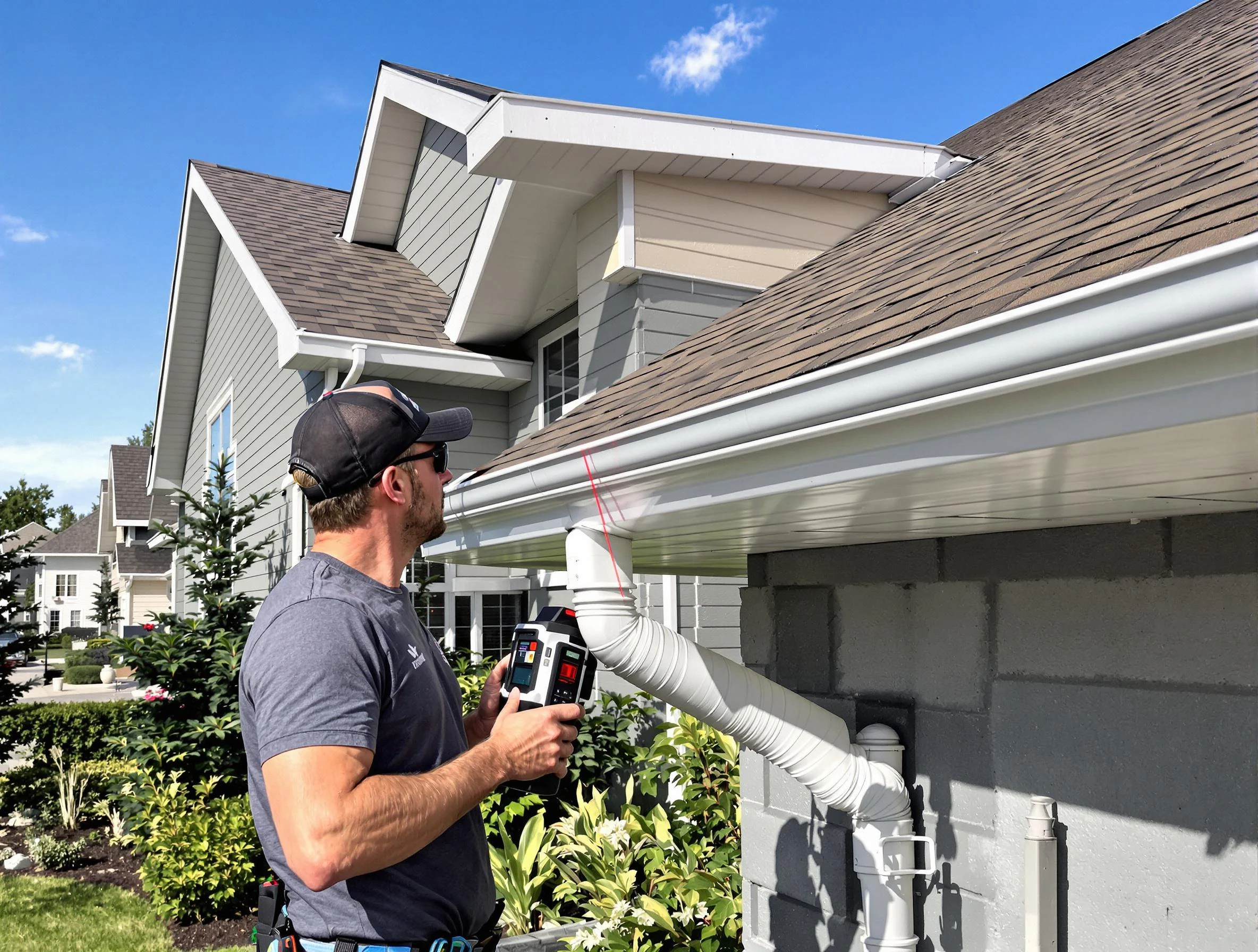 At New Franklin Roofing Company, our team measures and cuts your gutters right at your property, ensuring the perfect length and contour every time. The result is a streamlined system with minimal joints, excellent leak resistance, and robust defense against harsh weather.